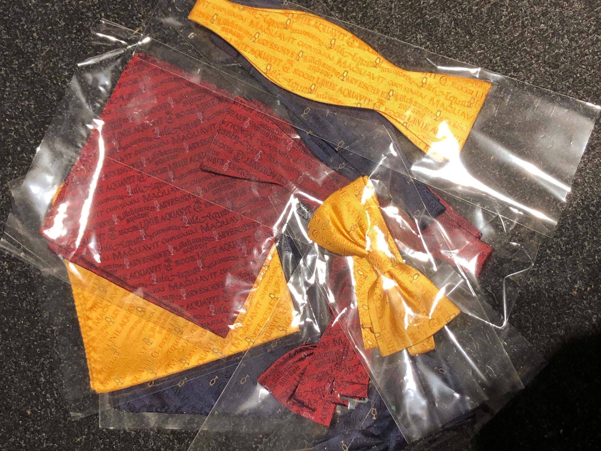 I dag kom en pakke dumpende inn døren med følgende innhold: Sløyfer og lommetørklær i samme farger og mønster som slipsene i nettbutikken. Det er ikke mange av hver –…