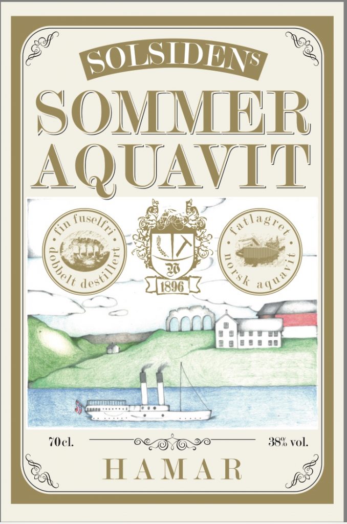 Etiketten er tegnet av en lokal Hamarkunstner og forstiller Mjøsa med den gamle dampbåten Kong Oscar foran hovedbygningen på Storhamar gård. Gården brant dessverre tidlig på 1900-tallet. Ellers er etiketten inspirert av de klassiske Sælid-aquavitene på 1800-tallet