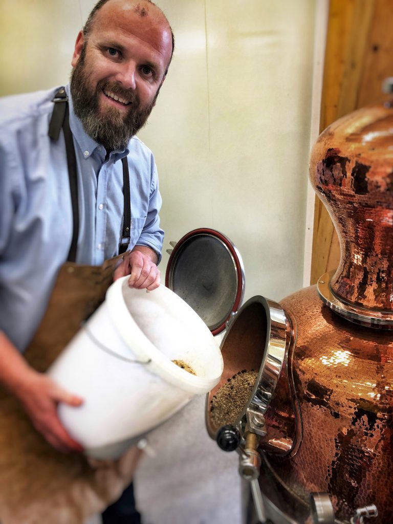 Anders Wetten i ferd med å lage et krydderdestillat til en ny batch med akevitt.