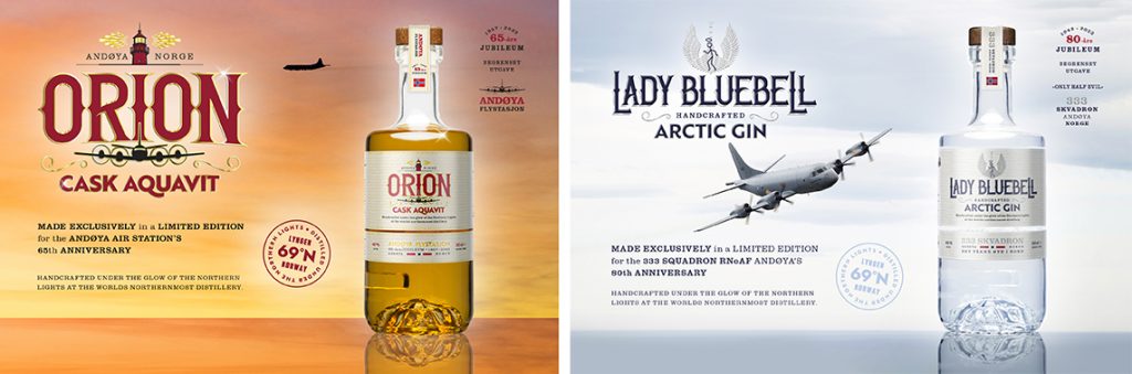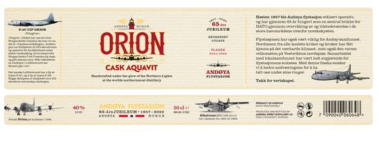 Planen var at brennevinsprosjektet skulle være en liten, lokal sak, men da akevitten Orion og ginen Lady Bluebell ble lansert onsdag 9. februar 2022, tok det helt av og den første batchen på 240 pluss 240 flasker forsvant ut av hyllene på Vinmonopolet på Andøya i løpet av en time. Dette er historien om en akevitt som hedrer Andøya flystasjon og Andøysamfunnet som har vært vertskap for den førstnevnte i 65 år samt en gin som feirer at 333 skvadron fyller 80 år.