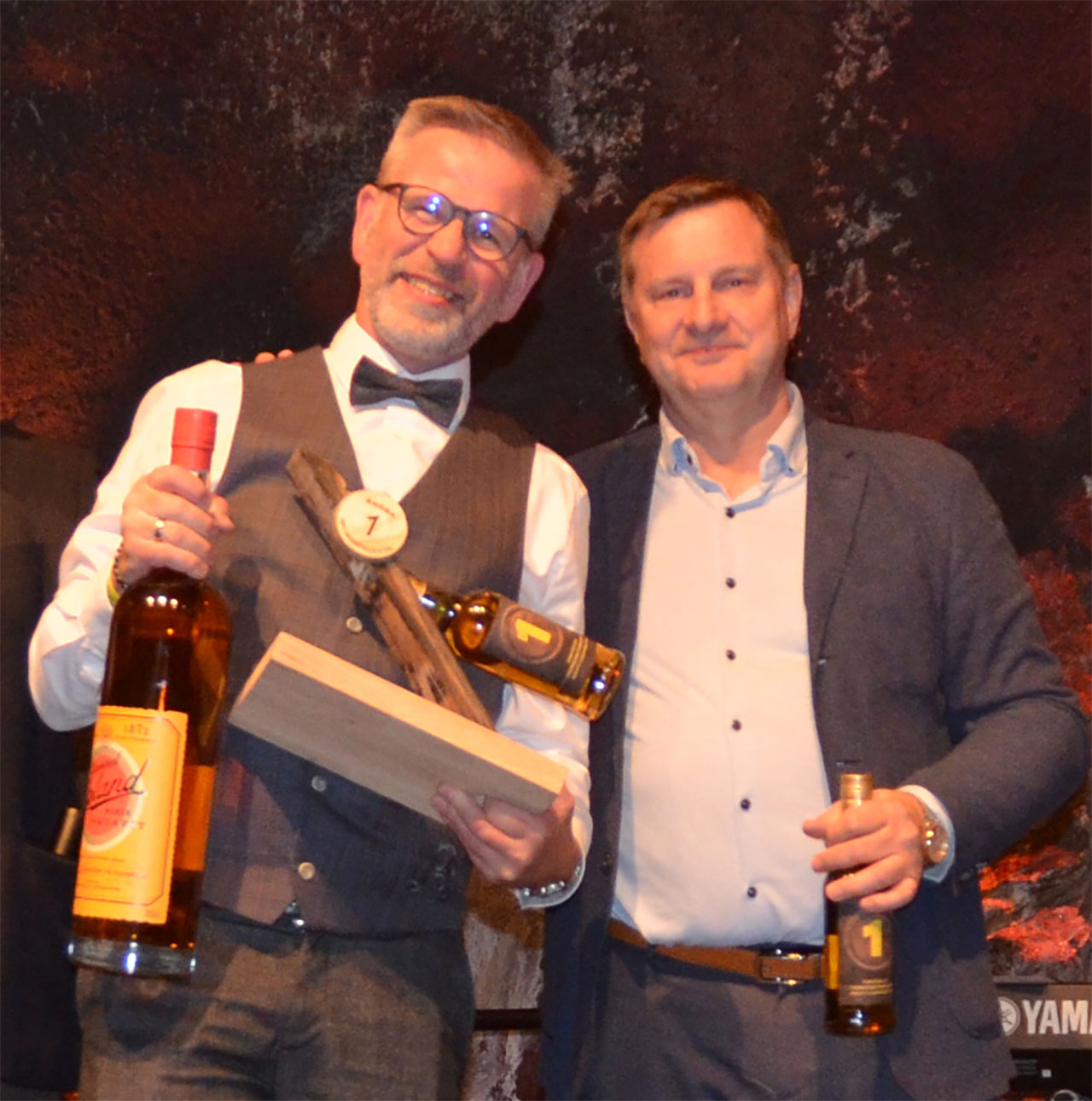 Bartender Karl F. Rasmussen (60) som til daglig er bartender hos Color Line, nærmere bestemt på Color Magic, dro i land seieren foran ti konkurrenter med kreasjonen «Solhjulet» basert på Opland Premium Aquavit, blant annet ispedd Gran Ruglikør med plomme.